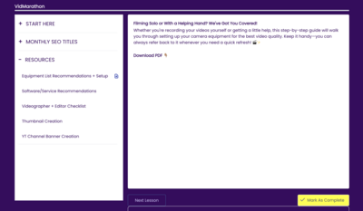 That’s exactly why VidMarathon exists—to save you time and eliminate the guesswork. Instead of spending hours figuring out what to film, you’ll have a clear, structured plan ready to go.
